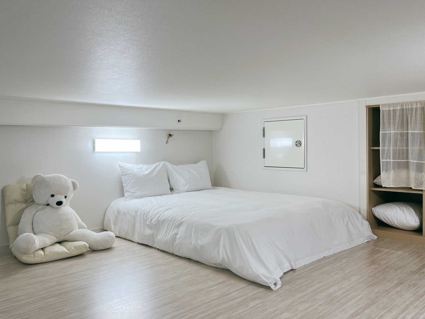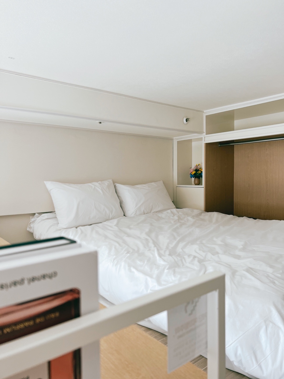 - 베이지와 화이트색의 조화를 이루는 넓고 깨끗한 오텔객실.